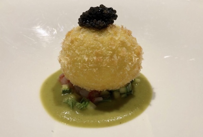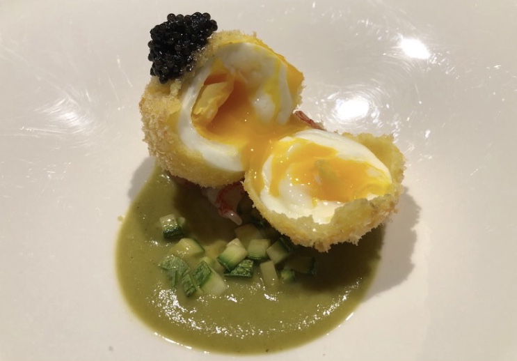 Aquadulcis, uovo croccante, zucchine alla scapece, gamberi rossi e caviale, il piatto multingredienti e consistenze riesce a trovare il suo equilibrio grazie all’indubbia, affinata e raffinata maestria dello chef Vincenzo Cucolo