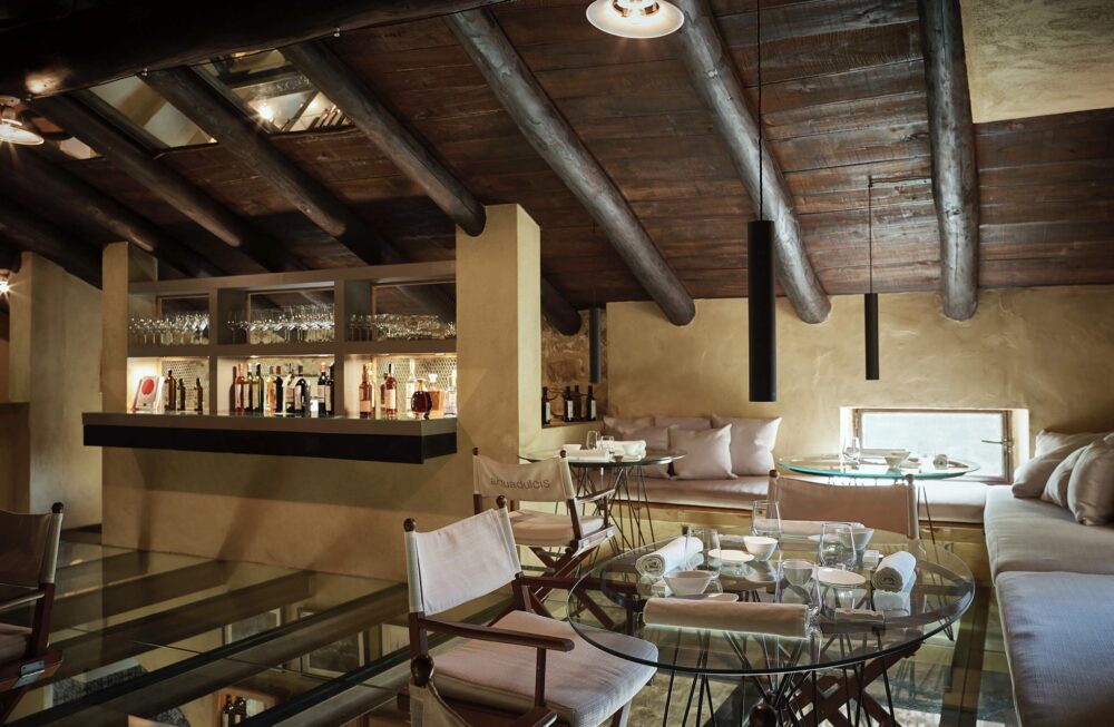 Aquadulcis, la sala, Massimo Olivieri ha ridato vita ad un antico frantoio Cilentano, armonia e stupore coesistono, la mano dell’Architetto è stata determinata ma delicata, più che di ristrutturazione sapiente possiamo parlare di visione eccellente, quel noi oggi ammiriamo credo fosse già ben chiaro nella sua mente, non un progetto in divenire ma la “semplice”, si fa per dire, realizzazione di un’idea.