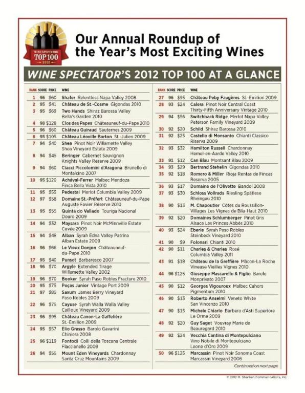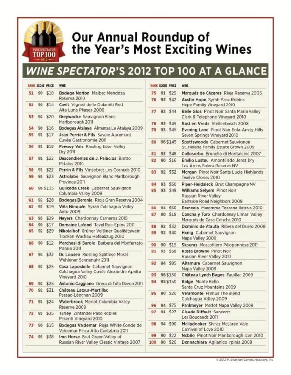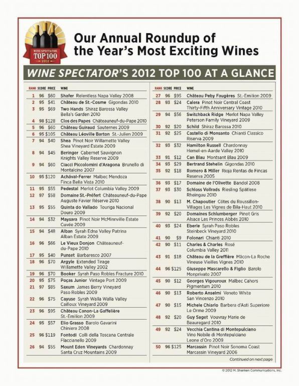 Wine Spectator 2012: ecco i migliori 100 vini del mondo