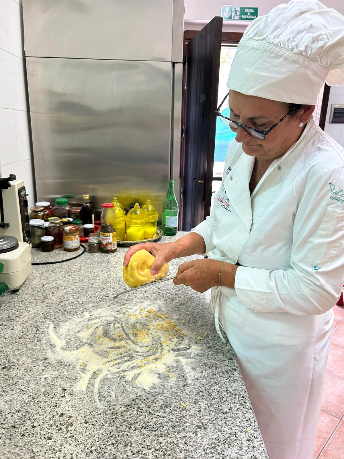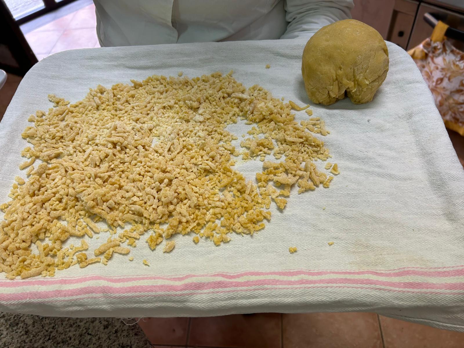 Trascorso il tempo, passatelo su una grattugia a fori larghi facendo cadere i pezzetti di pasta nella semola. Con l’aiuto di un setaccio, eliminate quella in eccesso.