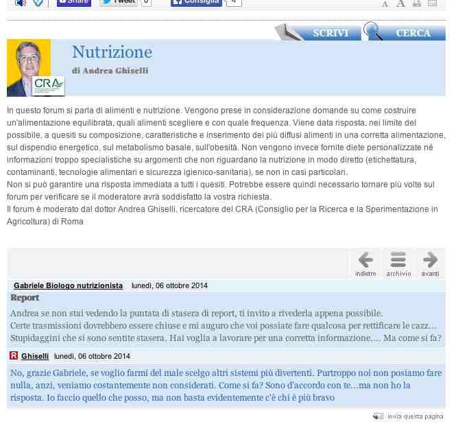 I nutrizionisti su Report: meglio non vedere queste c… lo scrivono sul Forum del Corriere.it