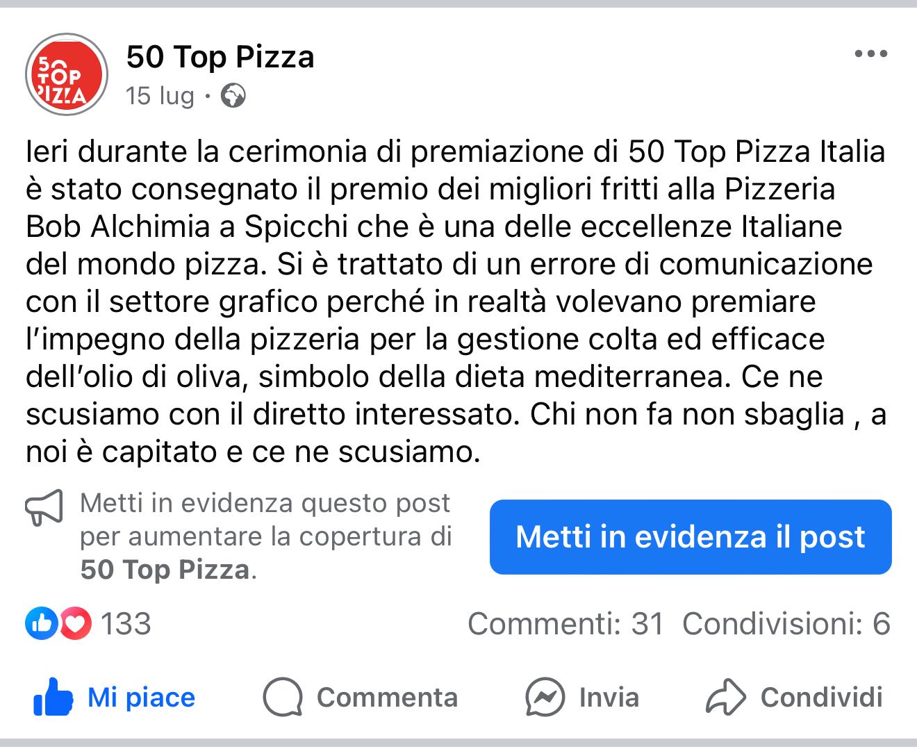 Totò Fucito ci ha molto marciato. Da 16 giorni scrive quotidianamente di noi, quasi una ossessione psicotica. Esperto di fumetti, organizzatore di seratine sponsorizzate nelle pizzerie, mi ricorda i malati di fica del liceo che per corteggiare le ragazze parlavano male del loro fidanzato: dopo l’ultimo, ennesimo, fallimento professionale, ormai dedica metà del suo tempo a sparlare di noi e l’altra metà a rimbrottare i pizzaioli perché sono contenti di stare in 50 Top Pizza!