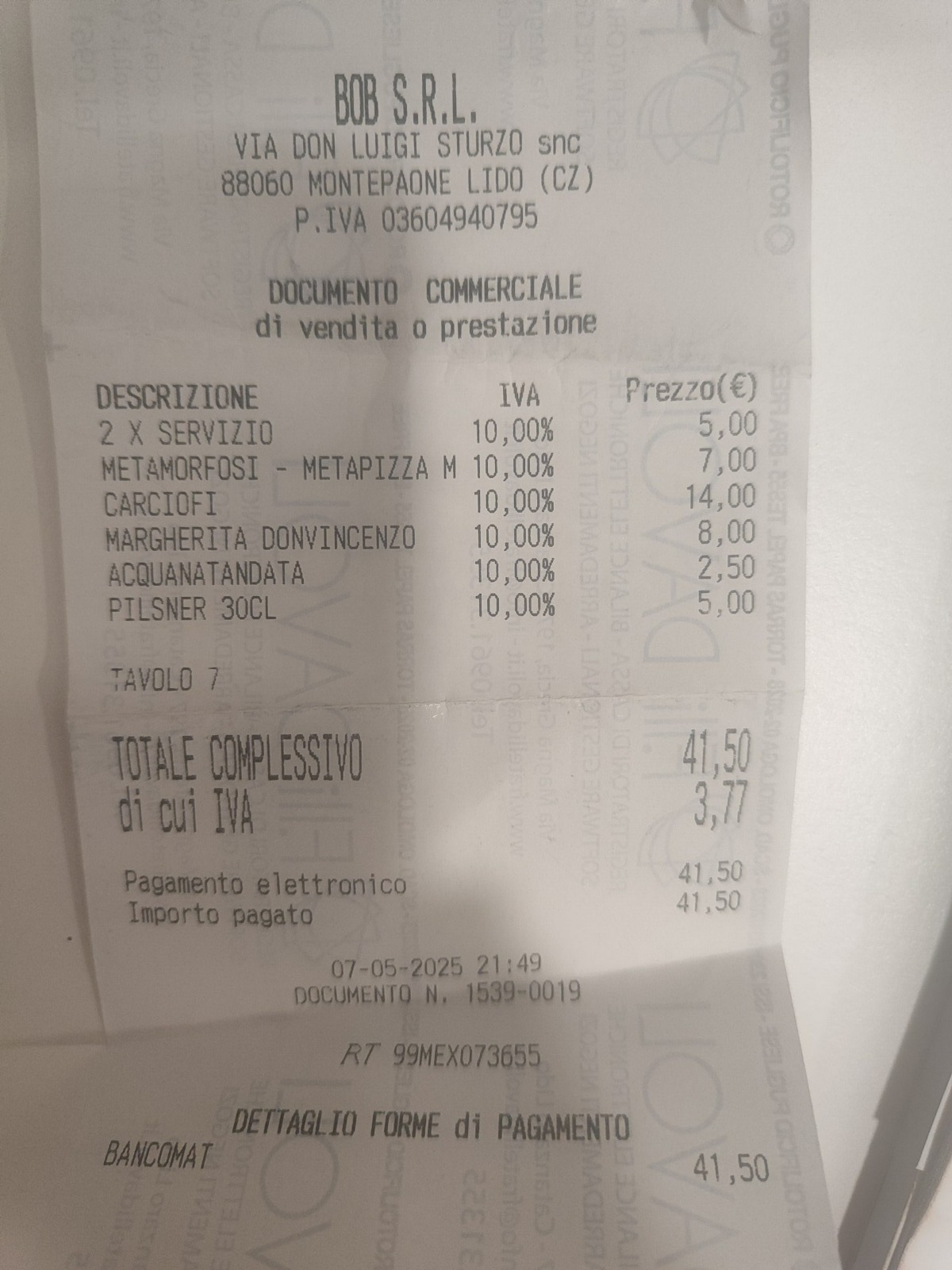 Scontrino Bob Alchimia a Spicchi 2/8/2025 Torna a: 50 Top Pizza, quattro precisazioni Lo scontrino della nosytra visita a Bob Alchimia a spicchi← Precedente