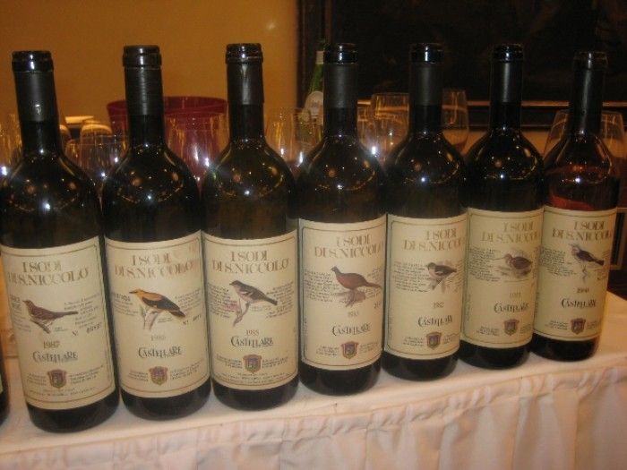 I Sodi di San Niccolò è stato l’apripista per quei vini che sarebbero stati definiti Supertuscan ma prodotti con vitigni internazionali. I Sodi è un vino italiano dominato dalla freschezza di una preponderante acidità, caratteristica che costituisce il filo conduttore tra tutte le annate degustate e che resta un punto fermo per l’intero arco temporale della sua vita (vedi annata 1980). Costante è anche la fiducia e la passione profusi dall’azienda verso il Sangioveto e la Malvasia Nera e dobbiamo riconoscere merito a Castellare di Castellina di essere rimasta fedele nel tempo con la propria filosofia di vino, nel pieno rispetto dei vitigni autoctoni e del gusto non necessariamente piegato alle logiche di mercato, tanto da adeguare il anche le etichette a tale strategia aziendale.