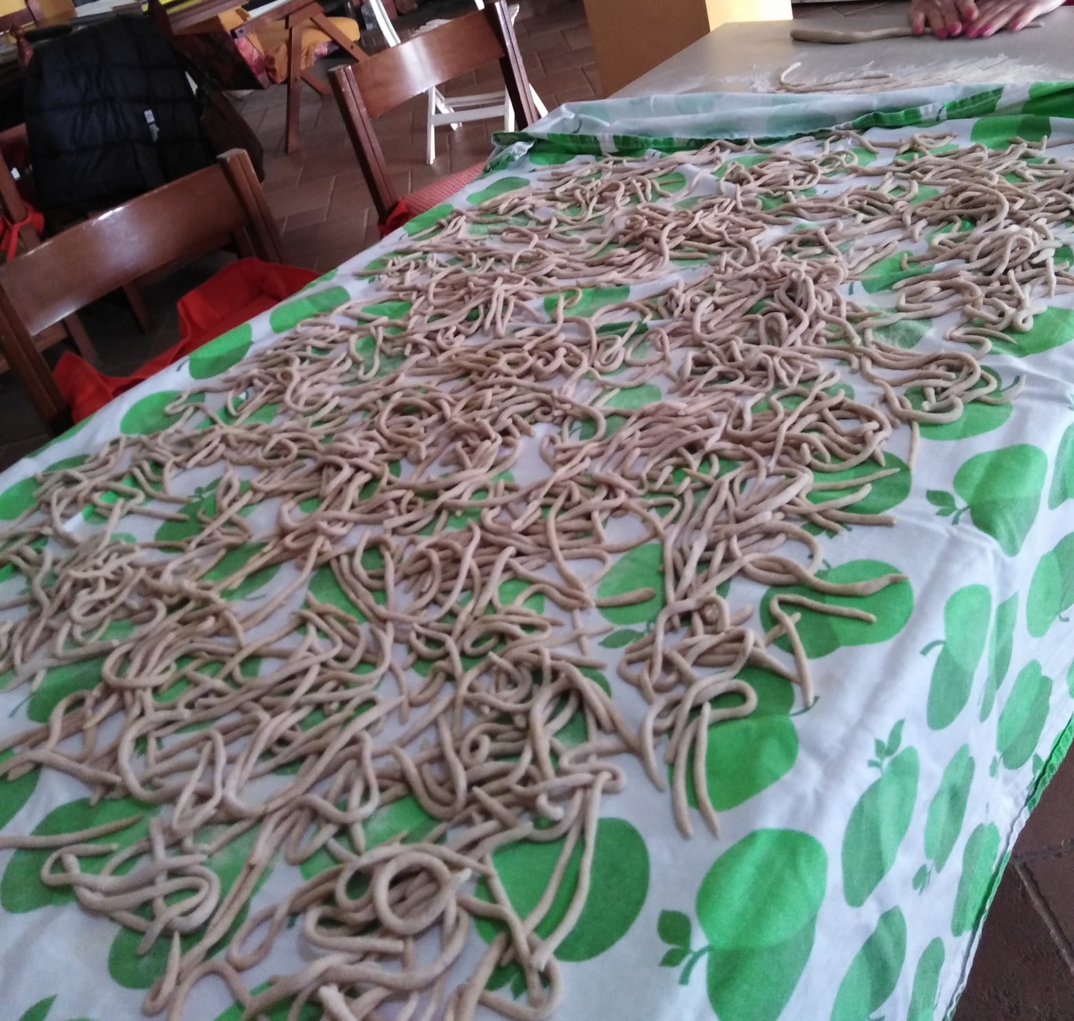 <<Questo tipo di pasta rappresenta la nostra tradizione più autentica, è il piatto della festa. Una volta era, però, una pietanza poverissima che si realizzava con quello che si aveva in casa, in primis le castagne e poi un poco di farina perché quest’ultima era considerata un bene prezioso. Il condimento, invece, è composto da olio, aglio, prezzemolo e peperoncino, ingredienti semplicissimi e a disposizione di tutti. Oggi l’impasto non prevede solo farina di castagne ma anche semola ed una piccola quantità di farina 00. Per tanti anni era finito nell’oblio fino a quando non è stato attenzionato dal professore Massimo Cresta del dipartimento di Antropologia dell’Università La Sapienza, che ha approfondito sia gli aspetti nutrizionali che quelli prettamente culturali. Si tratta in sostanza di un piatto che incarna principi di grande attualità, ad esempio è molto richiesto da chi segue un’alimentazione vegana>>.