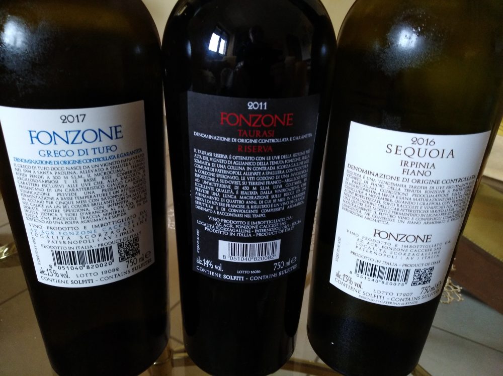 Controetichette vini di Fonzone vincitori a Radici del Sud 2018