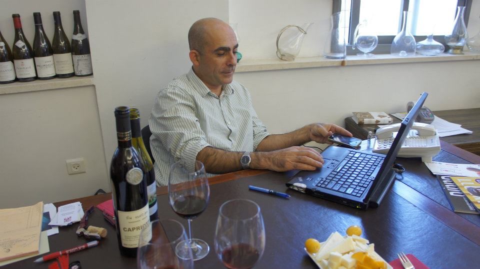 Mr Haim nel suo ambiente..Vino, computer e stuzzichini.GBLL 13/1/2012 Torna a: I vini israeliani, storia e regole Kosher Mr Haim nel suo ambiente…Vino, computer e stuzzichini (foto di Sara Marte)← PrecedenteSuccessiva →