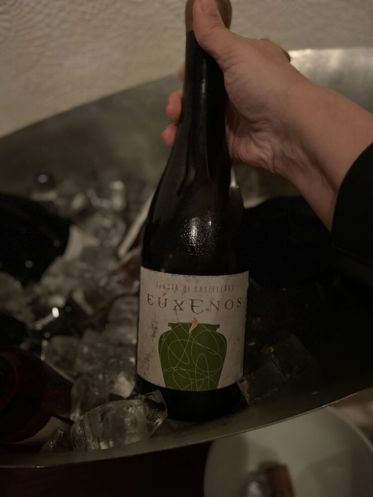 Eùxenos 2022 è una Malvasia delle Lipari in purezza, secca, macerata in anfora di coccio pesto. La fermentazione spontanea avviene sempre in anfora così come l’affinamento, segue un ulteriore periodo di un anno in bottiglia. Colore dorato, profumo di pesche e mandorle fresche, erbe scaldate al sole e roccia marina. Il gusto mantiene le promesse sentite al naso e diventa un vino da bere con i primi di pesce, con il sashimi condito alla mediterranea con capperi, olive.