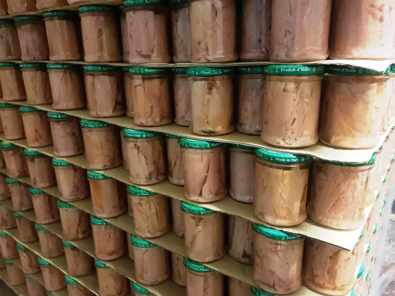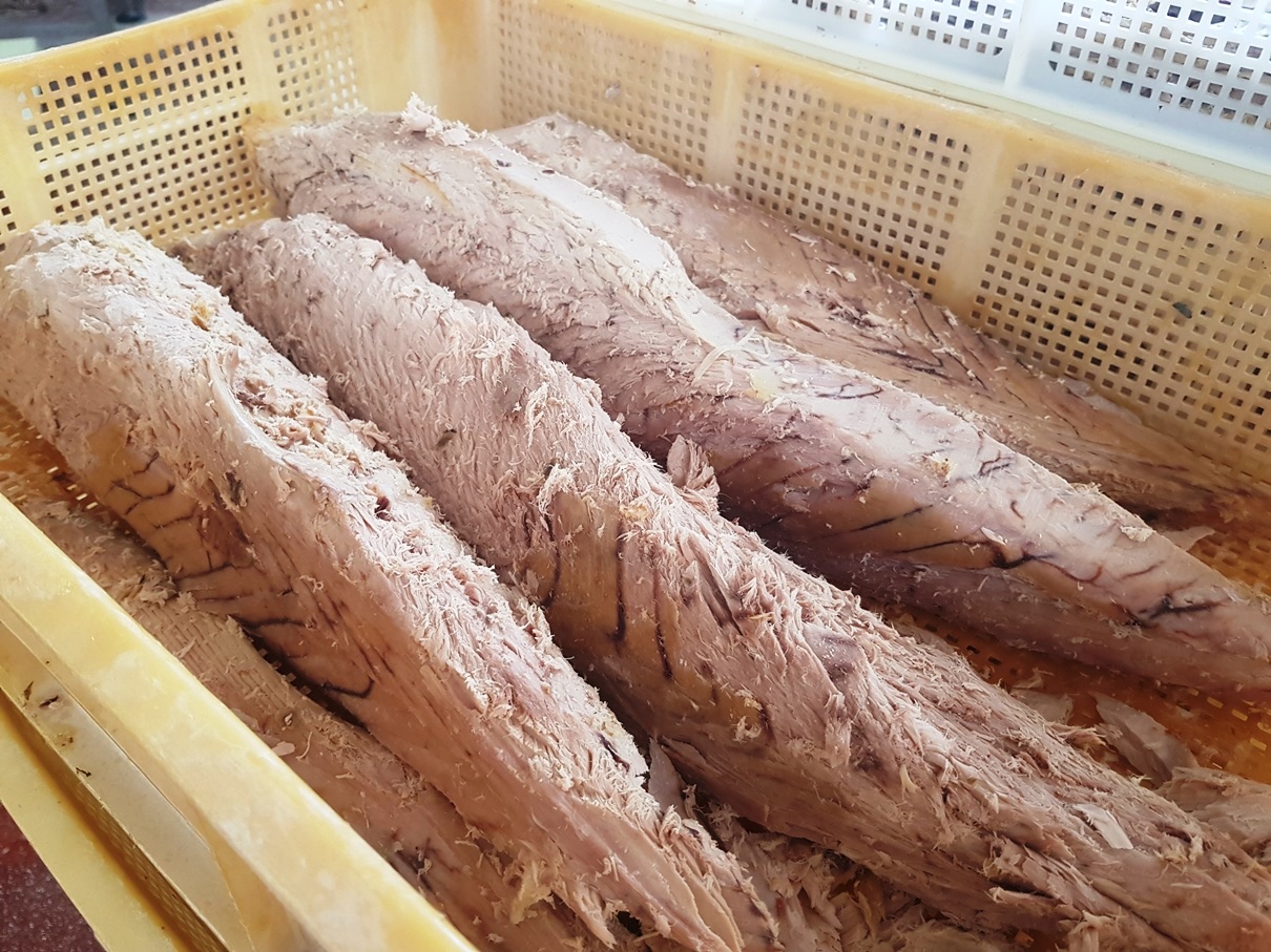 Visitando l’azienda a Pellezzano, subito alle spalle di Salerno, si viene colpiti dal profumo di pesce appena bollito, assistiamo infatti alla lavorazione del tonno. Tutto è fatto a mano, dalla rifilatura dei filetti alla loro pulizia, e ovviamente l’invasamento, sia delle parti più nobili che dei ritagli, che finiranno nelle scatolette di latta. Troveremo i loro prodotti nella grande distribuzione anche con il marchio Sapori di Mare.