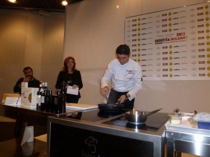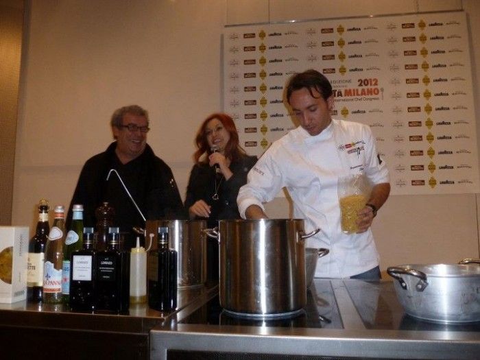Tutta campana la prima parte di Identità di Pasta a Milano. Andrea Aprea da un pà di mesi al Vun del Park Hyatt a Milano, Nino di Costanzo del bistellato Mosaico di Ischia, e l’eroe stellato, Francesco Sposito di Taverna Estia a Brusciano. Sono cresciuti questi chef d’età e d’esperienza. Affrontano il mondo con le spalle larghe, sempre aperti a nuove frontiere della cucina. Andrea Aprea “ ‘O marziano” napoletano sbarcato a Milano ha subito fatto soffiare una ventata d’aria fresca, mediterranea, di lungo respiro, più che una brezza.