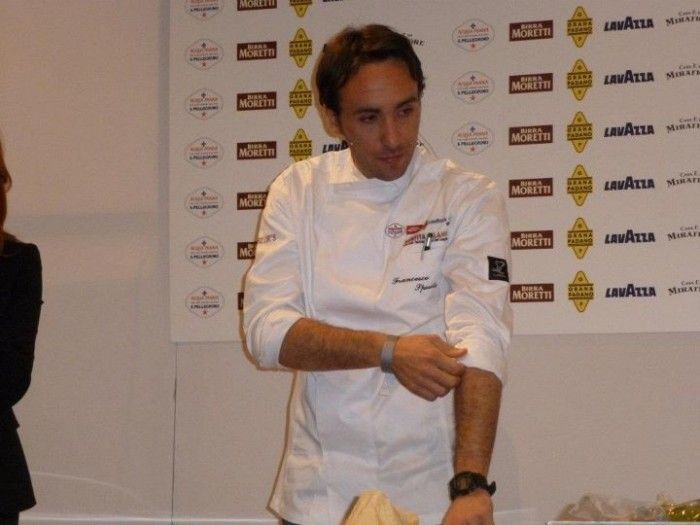 Il tris d’assi campano si chiude con la perfomance di Francesco Sposìto, giovane che emergente per le Guide Espresso e coraggioso ristoratore stellato, insieme al fratello Mario in sala a Taverna Estia a Brusciano.