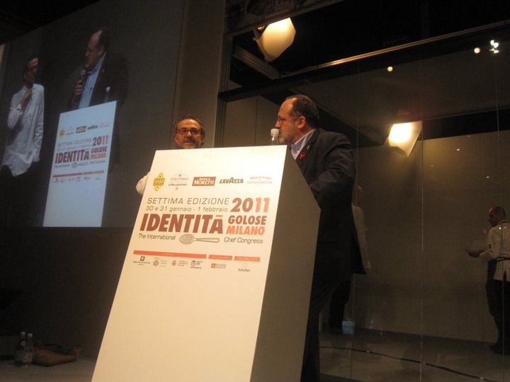 Stiamo andando via , Paolo Marchi ci richiama c’è un'”Ansa”, Massimo Bottura è chiamato sul palco: è stato appena nominato chef dell’anno nomination conferita dalle Commanderies Francesi e dalle accademie della cucina  di venti paesi , tra i predecessori, chef del calibro di Joel Robuchon.