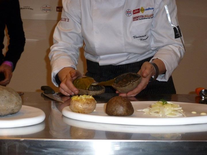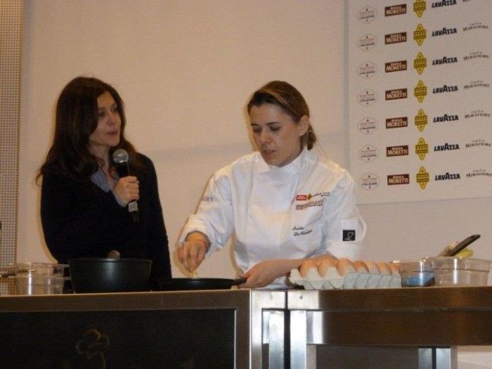 La sala si è animata con l’arrivo della vulcanica Viviana Varese, campana della splendida Maiori, da molti anni chef stellata di Alice a Milano. Lo sguardo e le mani sono quelle dii una donna faticatrice , che si è fatta da sola, testarda e consapevole del dove vuole arrivare.