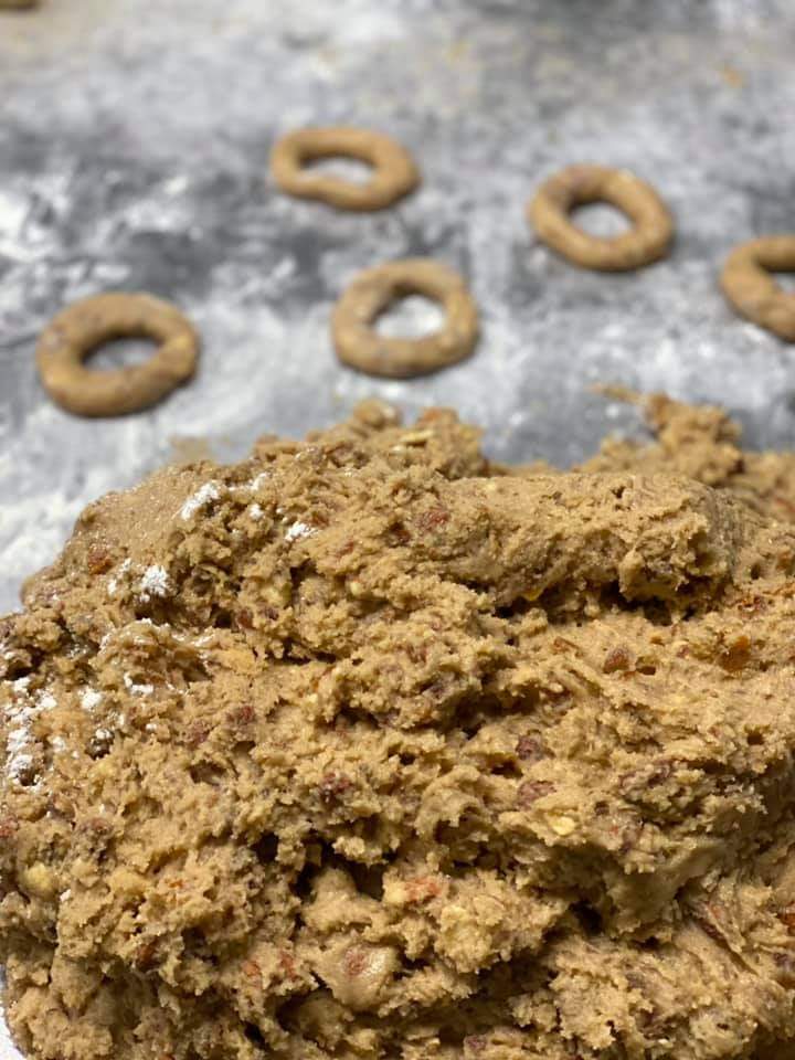 - Dividere l’impasto in piccoli pezzi ed ottenere dei cordoncini le quali estremità verranno unite per creare la classica forma a ciambella del roccocò.