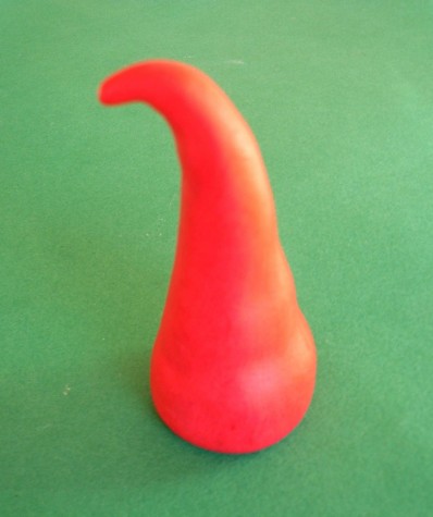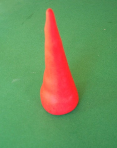 Modella una pallina di glassa fondente rossa fino ad ottenere un cono molto lungo.