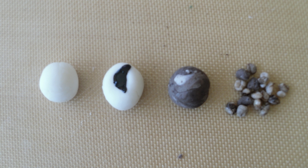 Prendi della glassa fondente bianca. Aggiungi una goccia di colorante nero e lavora la glassa in modo da ottenere delle sfumature grigie non uniformi.