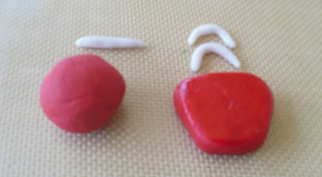 Per realizzare la borsa da mare, forma una pallina di glassa rossa, schiacciala e premi leggermente sui bordi inferiori. Metti la borsa in verticale e verifica che stia in equilibrio, altrimenti continua a modellarla finchè non si regge in maniere stabile.