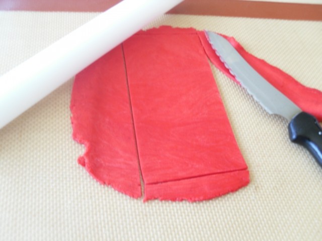 Stendi della glassa fondente rossa. Taglia un rettangolo.