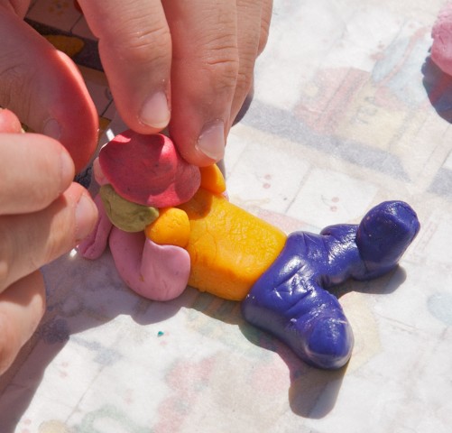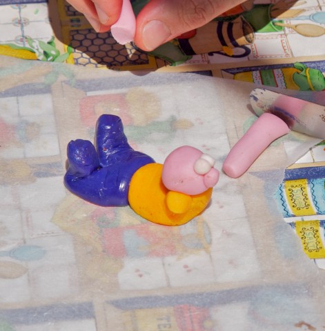 Applica il corpo (una pallina sciacciata), la testa, gli occhi, il naso.