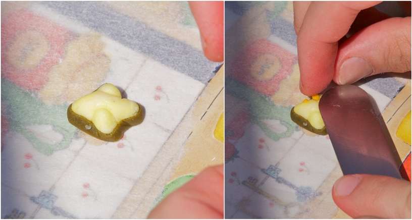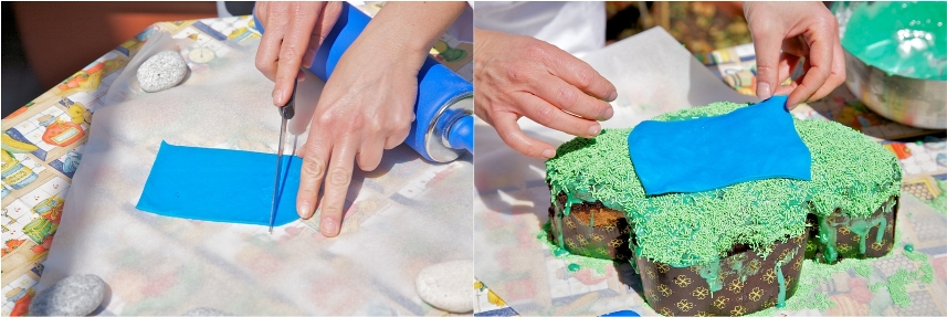 Per realizzare la “coperta”, stendi della glassa fondente e taglia un rettangolo.