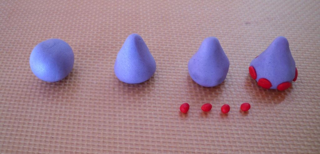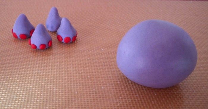 Per ogni zampa, partendo da una pallina di glassa fondente, modella un cono. Con l’apposito attrezzino, o un oggetto dalla punta tonda, crea quattro fossette sulla base del cono.