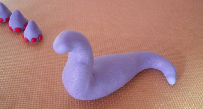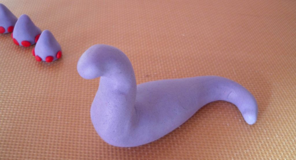 Assottiglia due lati della palla in modo da iniziare a formare il collo e la coda del dinosauro.