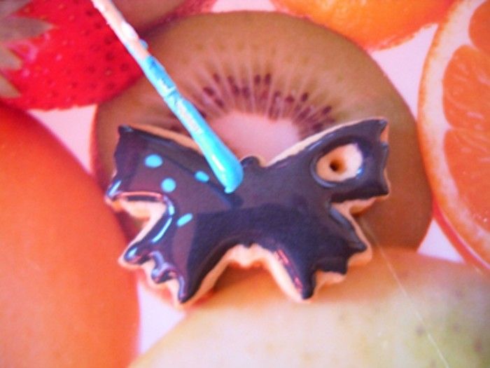 Con uno stuzzicadenti intinto nella glassa reale dell’altro colore, fai dei piccoli puntini e fai asciugare.