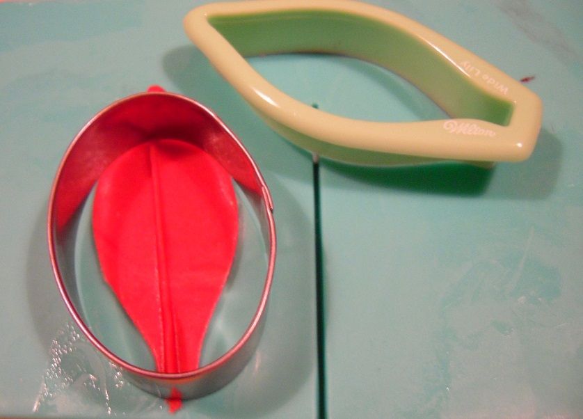 Stendi la gum past sull’apposita tavoletta con la fessura per creare il crinale. Taglia il petalo con il cutter specifico, o a mano libera, oppure, come ho fatto io, combinando due cutter (foglia + ovale).