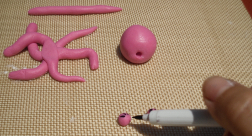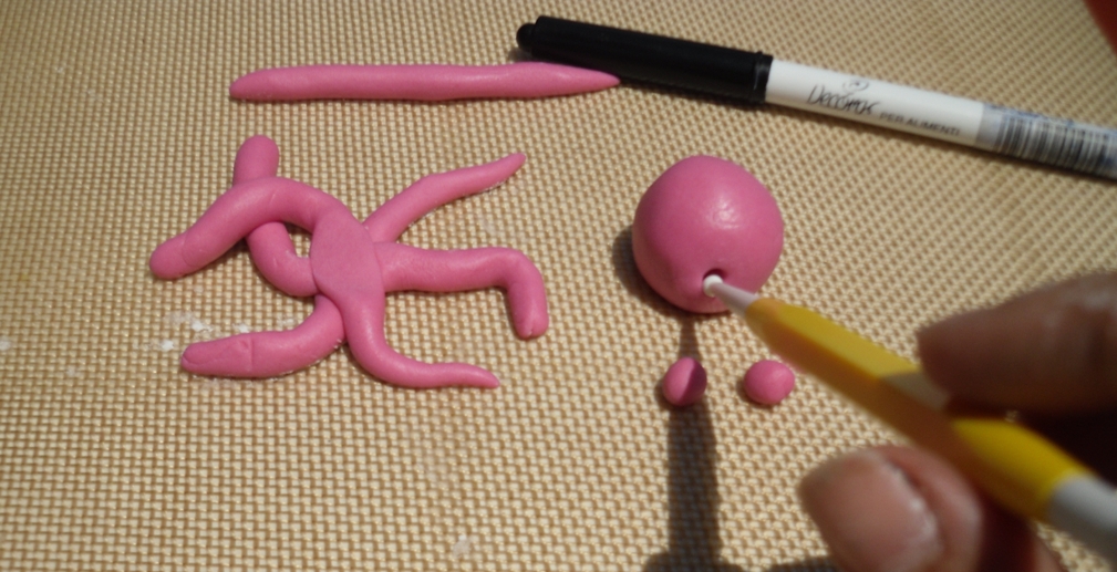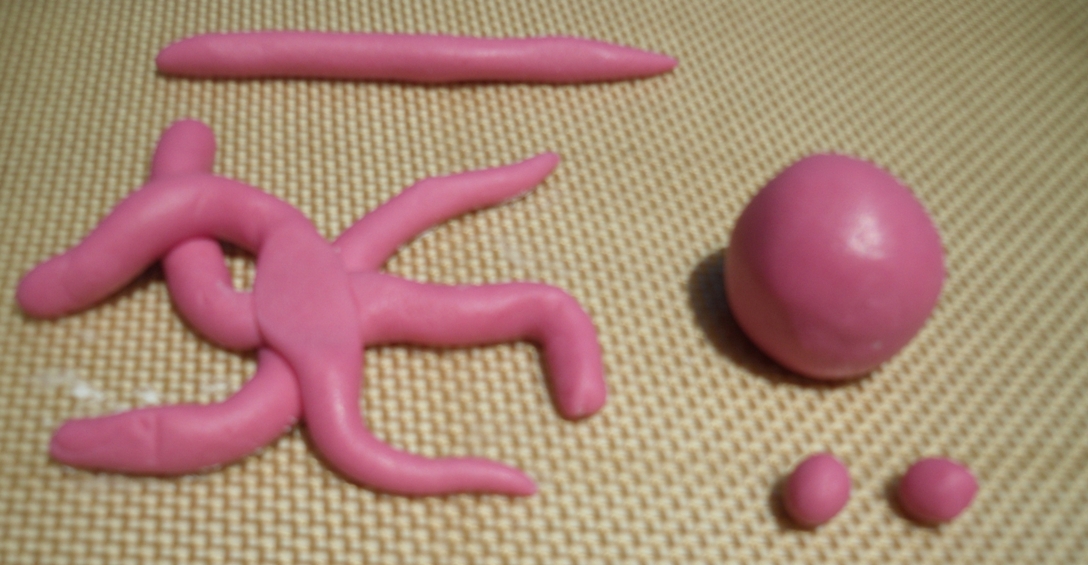 Per realizzare il polipo prepara 4 cilindri di glassa fondente (tentacoli), una pallina grande