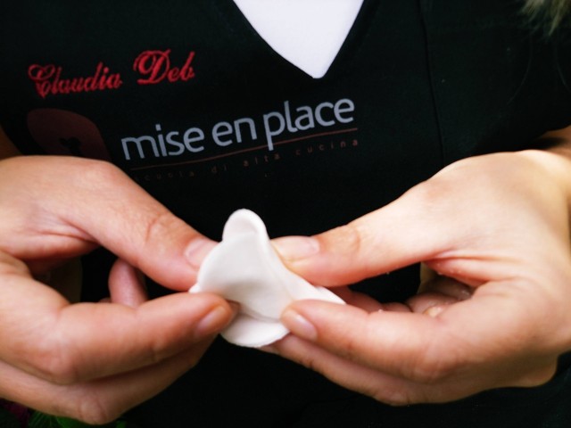 Chiudi il fiore applicando, se serve, una goccia di colla edibile (o acqua) tra il primo e l’ultimo petalo.