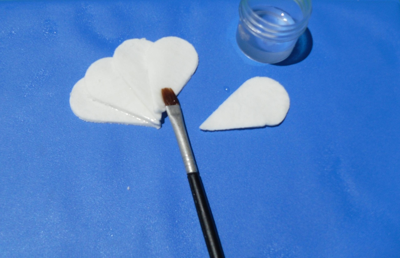 Sovrapponi i petali a “ventaglio” mettendo tra un petalo e l’altro una goccia di colla edibile o in alternativa una goccia d’acqua (in questo caso, dovrai attendere un po’ di più per far asciugare).