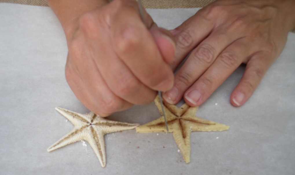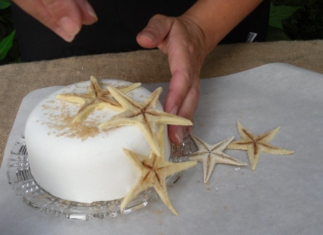 Assembla la torta con le stelle e la “sabbia” (zucchero di canna).