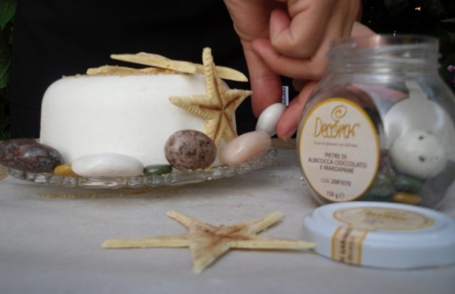 La magia dell’estate e degli abissi in una torta con sabbia, stelle marine e sassi di varie forme e colori. Vediamo come si fa.