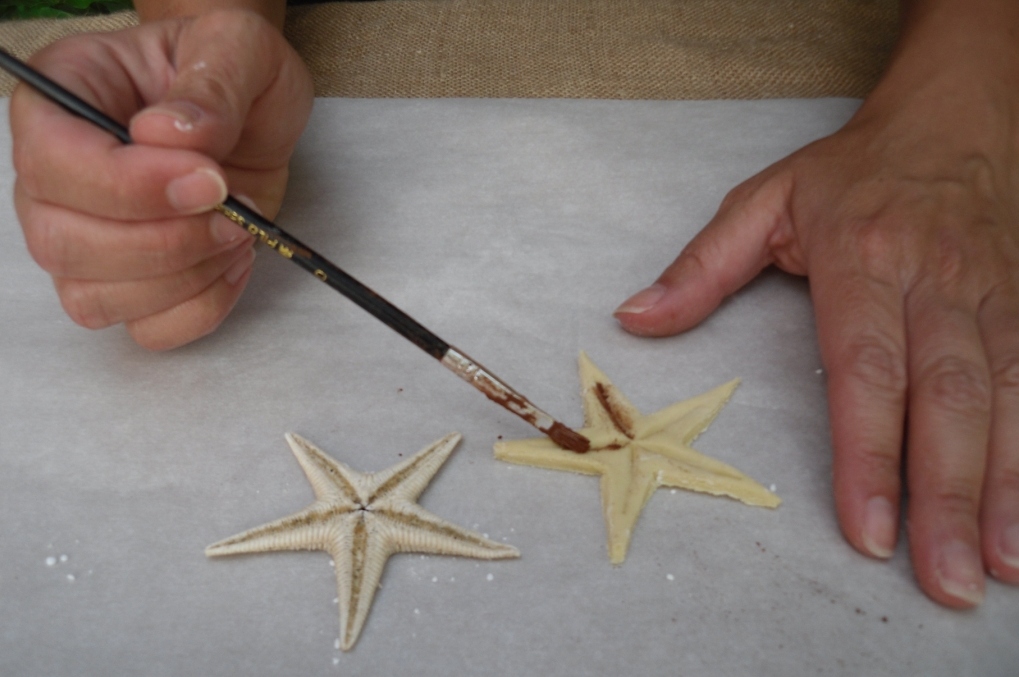 Scurisci le linee che hai tracciato, spennellando del colorante in polvere o del cacao.