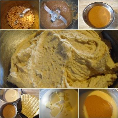 Trita le nocciole con un robot da cucina, procedendo ad alta velocità e facendo delle pause per evitlare che le lame, surriscaldandosi, brucino le nocciole. Continua fin quando le nocciole cacciano il loro olio e il composto diventa cremoso. Conserva in un contenitore di vetro con chiusura ermetica.