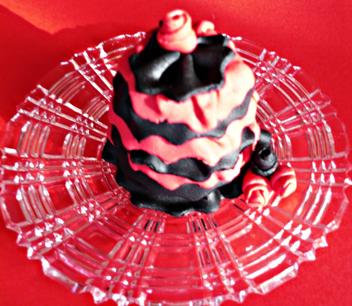 Per arricchire la decorazione ho realizzato delle semplici roselline, arrotolando su se stesse, delle striscie di glassa fondente.