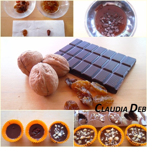 Il cake design di Claudia Deb. Pirottini di cioccolato fondente con cuore di uva passa cilena al rum