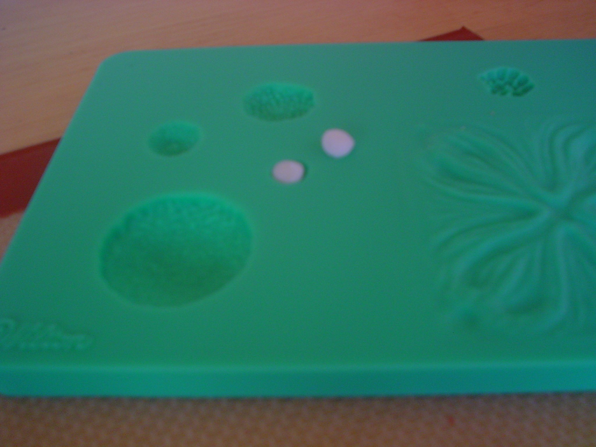 Crea il centrale del fiore. Io ho usato il “flower impression set” della wilton, ma il alternativa puoi fare una pallina ed ottenere l’effetto zigrinato, sciacciando delicatamente la pallina stessa su una grattuggia o una retina. Inumidisci il retro del centrale, ed applicalo al fiore pigiando delicatamente.