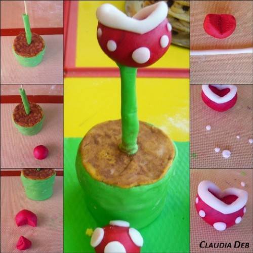 Il cake design di Claudia Deb. Tutorial fungo e pianta carnivora del video games Mario Bross, in pasta di zucchero