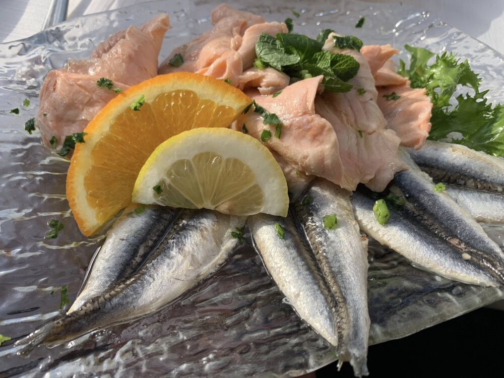 Dunque se siamo fortunati, e non è difficile, si piomba qui ad ora di pranzo, consiglio presto per trovare i tavoli che sporgono direttamente sul mare e sul piccolo pontile. Presto al Sud vuol dire le 12,30, anche 13, lo dico per chi è abituato alle cucine che chiudono alle 14 sopra Roncobilaccio. Qui, come ovunque sulla costa campana, potete arrivare però anche alle 15 e, se trovate posto, sedervi.