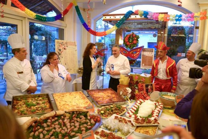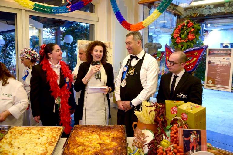 Carmela Abbate, patron del ristorante Zi Teresa, ha fatto degustare salsiccia e friarielli e le lasagne, sia bianca che rossa col classico ragù di Carnevale.