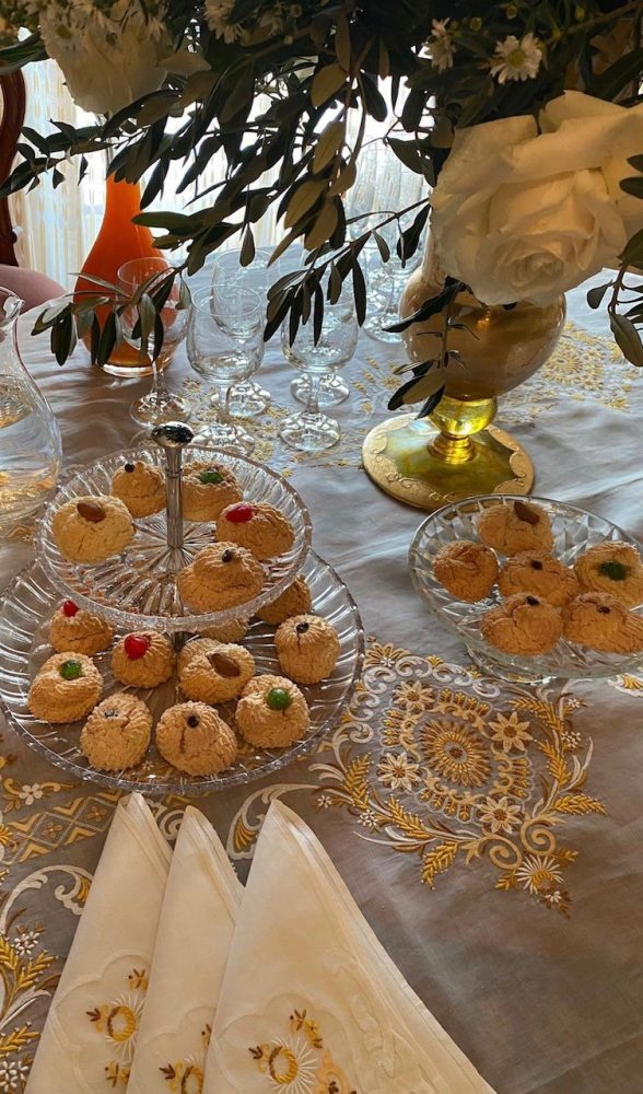 E poi ci sono i mastacciuoli, dolci a base di pan di Spagna, marmellata e naspro, che sono tipici delle zone più interne del Cilento. Maestre di questa preparazione erano delle donne che, pur non essendo pasticciere nel senso moderno del termine, in occasione dei matrimoni si recavano a casa degli sposi per la preparazione dei dolci. E così venivano preparate quantità enormi di pasticcini: alcuni per comporre i cartocci altri da servire al rinfresco che seguiva la cerimonia religiosa che, ricordiamolo, fino alla fine degli anni Sessanta si svolgeva esclusivamente a casa della sposa.