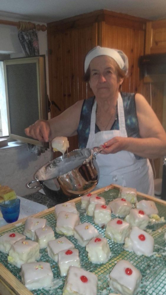 Fino a pochissimi anni fa a San Mango Cilento, frazione di Sessa Cilento, era Giannina ‘a dolciera la vera esperta di questa preparazione, arte ereditata dalla figlia Antonietta. A Montano Antilia, una certa zia Angelina, conosciuta in tutto il paese con il nome di Zizìa, da un unico semplice impasto- quello del Pane Dolce – composto da farina, zucchero, uova, buccia di limone e cremor tartaro, riusciva a ricreare varie tipologie di dolci: dai biscotti per il cartoccio ad una vera e propria torta, dopo aver bagnato la base con il vermouth che poi veniva farcita con la crema pasticcera, ricoperta dal naspro e decorata con semplici confettini colorati.