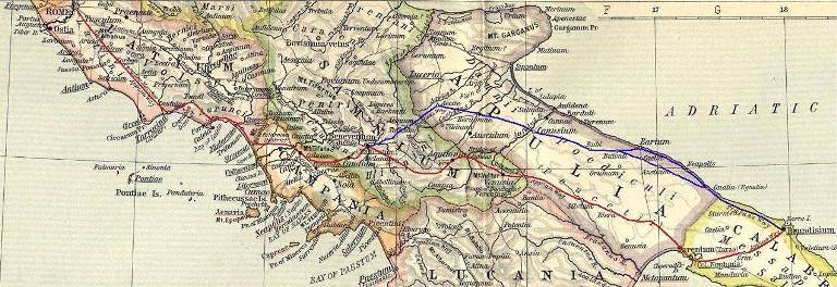 Lo scopo era quello di agevolare l’avanzata dell’esercito romano verso il meridione; non a caso, infatti, la strada fu successivamente prolungata dapprima fino a Benevento e, quindi, fino a Brindisi, per salpare verso la Grecia e l’Oriente. Nel tratto iniziale fu ristrutturata ed ampliata una vecchia strada che collegava Roma ai Colli Albani. Il tratto successivo, fino ad Anxur (l’odierna Terracina), fu molto agevole, visto che attraversava la piatta pianura paludosa dell’Agro Pontino. Subito dopo, però, mentre scollinava da Fondi a Formia, incontrò molte difficoltà ed i lunghi tempi morti, nella bella stagione, li passava all’ombra a degustare gli ottimi vini locali. Per questa sua abitudine, cieco (caecus) che beve (bibendum), fu coniato il termine Caecubum, fondendo parti dei due vocaboli precedenti. E con questo termine fu identificato un territorio geografico (monti Cecubi) ed i vini che lì si producevano.