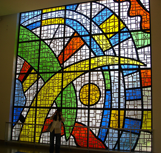 I volumi interni liberano la sincera espressione dei colori e delle forme delle opere presentate nelle tre grandi sale illuminate naturalmente dalle enormi vetrate colorate che consentono alla luce naturale di filtrare e riproporsi in maniera differente nei diversi momenti della giornata.