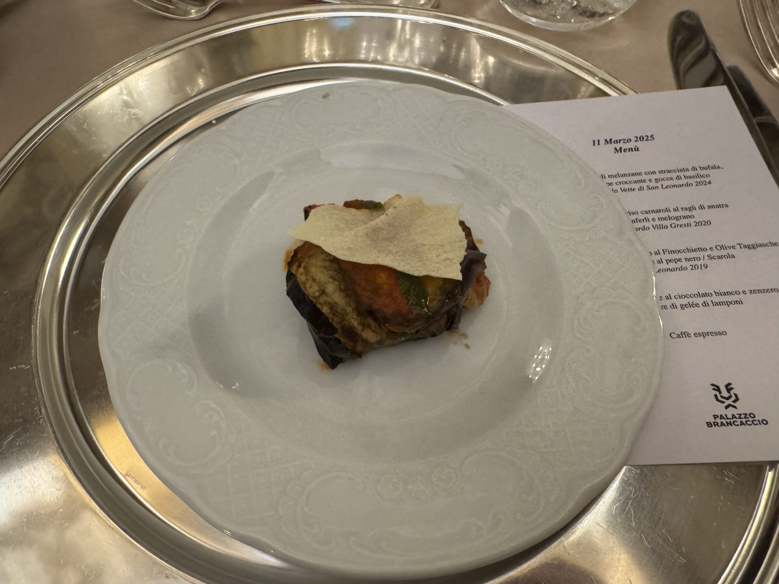 Millefoglie di melanzane con stracciata di bufala, cialda di pane croccante e gocce di basilico – Club Cristal 13/3/2025 Torna a: Il Club Cristal festeggia i 25 anni di fondazione: Tenuta San Leonardo ospite della prima serata Millefoglie di melanzane con stracciata di bufala, cialda di pane croccante e gocce di basilico – Club Cristal← PrecedenteSuccessiva →