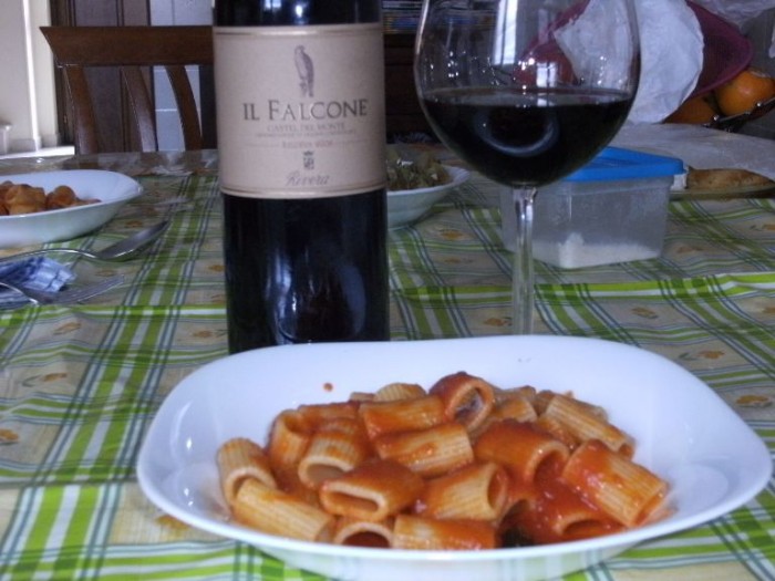 La gamma dei vini prodotti, curati da Leonardo Palumbo, è molto ampia ed articolata. Per la mia consueta degustazione ho scelto Il Falcone Castel del Monte Doc Riserva 2008, composto dal classico blend murgiano di selezionate uve di nero di Troia al 70% e saldo di montepulciano, maturate su terreni tufacei ad oltre 200 metri di altezza.