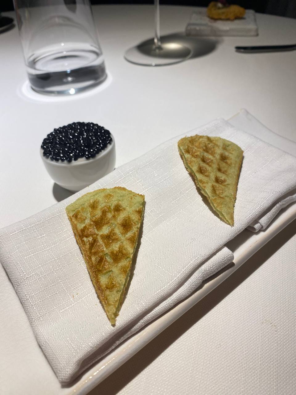 5 Il Faro di Capo d’Orso – Waffel alle alghe con caviale di aringa, alici, garum di alici e ricotta affumicata 1/10/2021 Torna a: Il Faro di Capodorso e la cucina di Francesco e Salvatore Sodano ← PrecedenteSuccessiva →