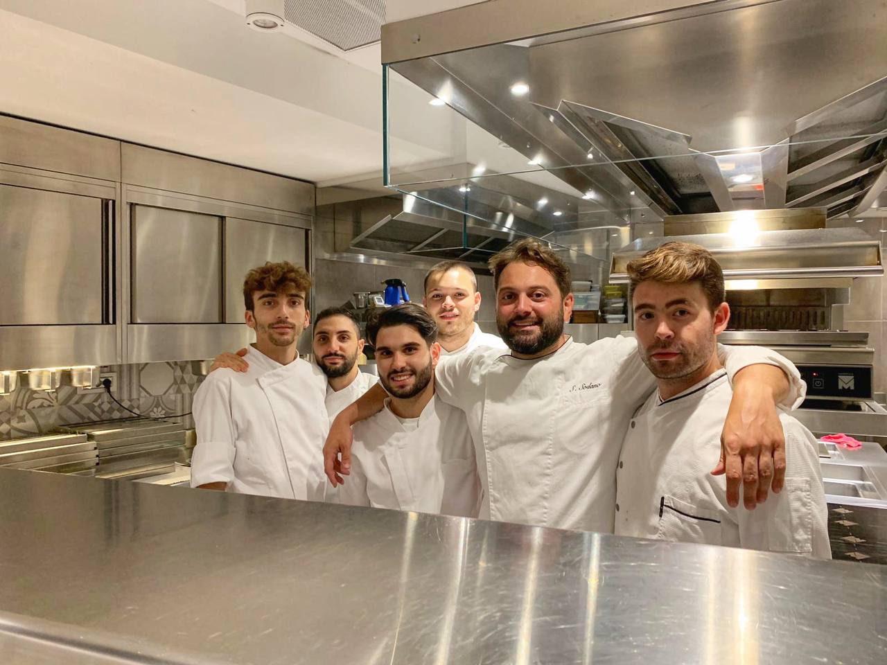 Francesco e Salvatore Sodano, due fratelli, due giovani chef. Promotori del Movimento Cucinanuova. Per l’Italia giovani. Loro però hanno lunga esperienze all’estero e sanno bene che superati trent’anni è il momento di buttare il cuore oltre l’ostacolo e mettere a frutto quanto si è appreso, studiato (Salvatore è tecnologo alimentare), costruito. Capitalizzare l’investimento fatto su sè stessi con spirito di sacrificio sia umano che economico. Il momento di iniziare a dare forma alle proprie idee. Iniziare. Si perché da questa cena di fine estate si vede chiaramente che sono in una fase di ascesa professionale e che seguendoli (come abbiamo iniziato a fare tre anni fa) osserveremo il percorso che li porterà a raggiungere la maturità e sarà un cammino che riserverà grandi sorprese.