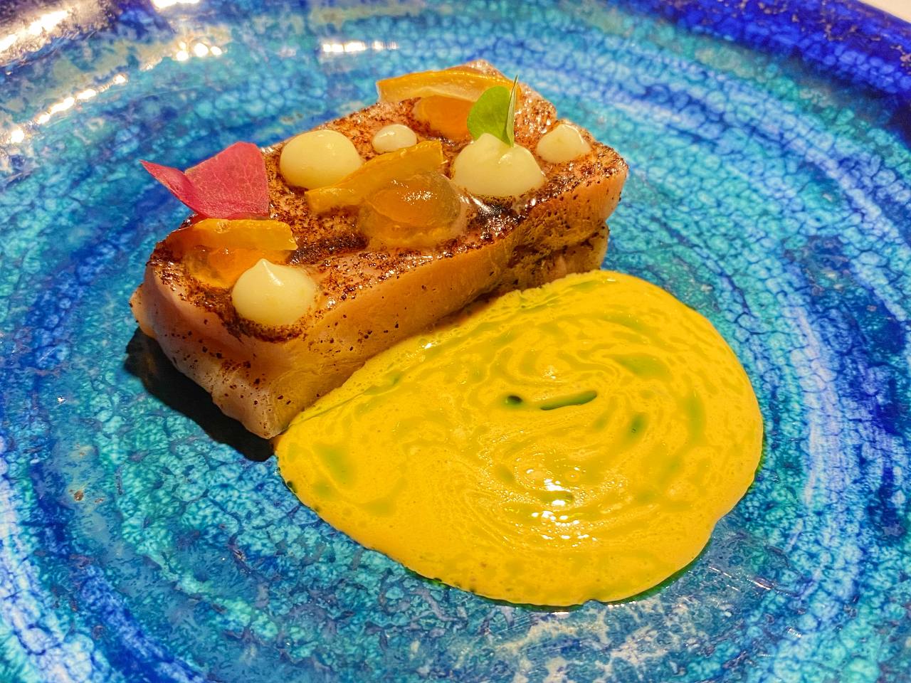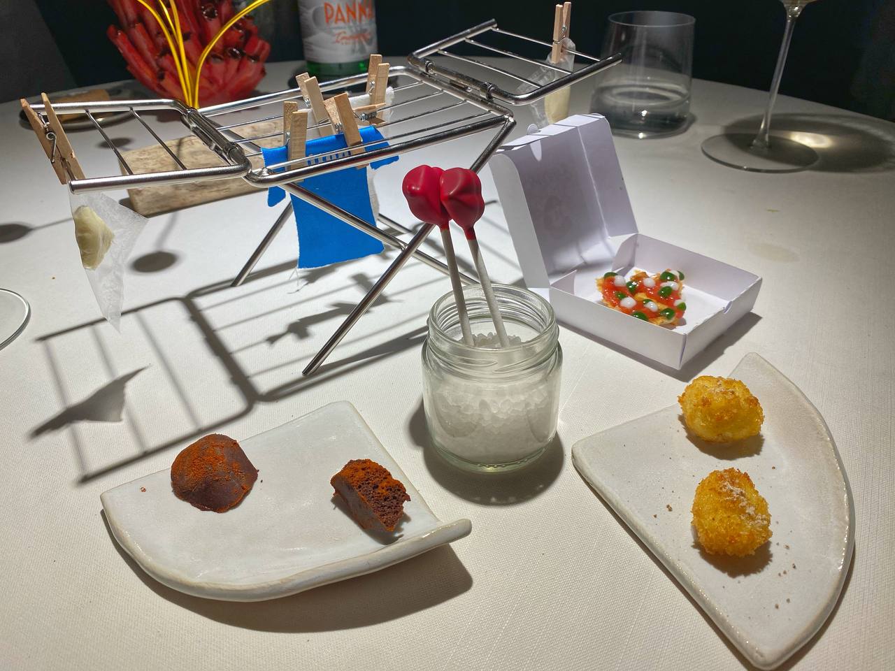 Uno stile di cucina in cui non si teme l’uso delle spezie, come negli aperitivi, o quello generoso delle erbe aromatiche dagli antipasti ai secondi. In cui si cerca la sapidità marina tendente all’umami attraverso la bottarga di ricci di mare stagionata in cera d’api o il garum di alici, giusto per fare qualche esempio. In cui si ostentano le sensazioni grasse tanto opulente in bocca per poi asciugarle grazie ai contrappunti amari e acidi, come quelle battute potenti dei pallavolisti che sembrano prendere una direzione diretta e prevedibile per poi virare negli ultimi 2 metri come fosse una magia. Resti lì a guardare la palla che ti cade davanti agli occhi, immobile, ma fondamentalmente ammirando il rischio e l’audacia.
